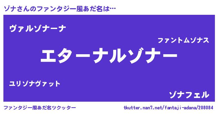 | 女子向けラノベタイトル風あだ名 | 『ゾナの雑貨屋さん』『ゾナ様がみてる』 |
