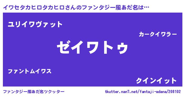 | 男性向けラノベタイトル風あだ名 | 『はたらくイワセタカヒロタカヒロさま!』 |