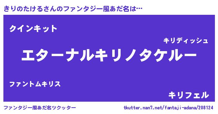 | 男性向けラノベタイトル風あだ名 | 『やはりきりのたけるの青春ラブコメはまちがっている 』 |