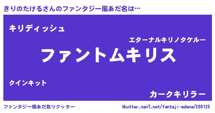 | ヒーロー風カッコイイあだ名 | 『炎刃騎士キリ』『ネオキリノタケル』 |