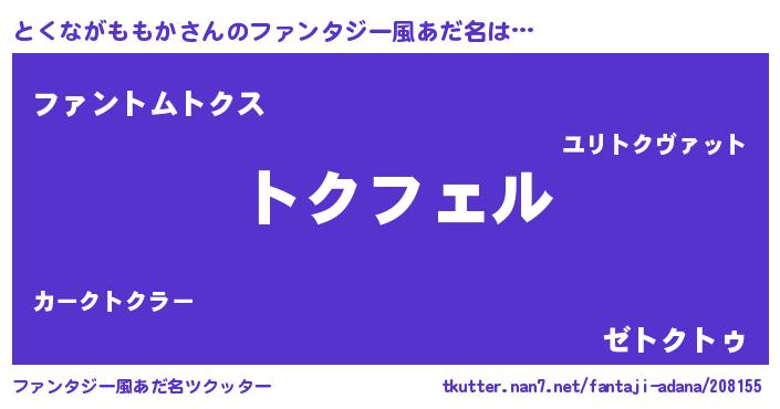 | ポケモン風あだ名 | 『トクチュウ』『ヒトクナガモモカ』 |