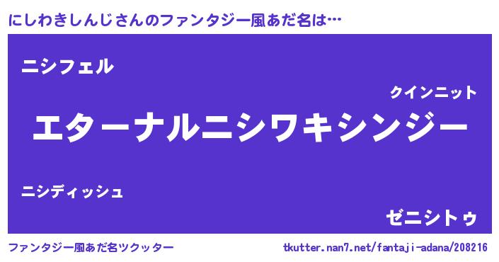 | 意味不明あだ名 | 『にしわきしんじフォーエバー』 |