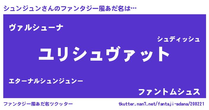 | ヒーロー風カッコイイあだ名 | 『仮面シュダー』『黄金騎士シュ』 |