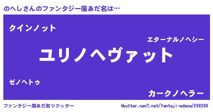 | 意味不明あだ名 | 『めかぶ科のへし属』『自称のへし』 |
