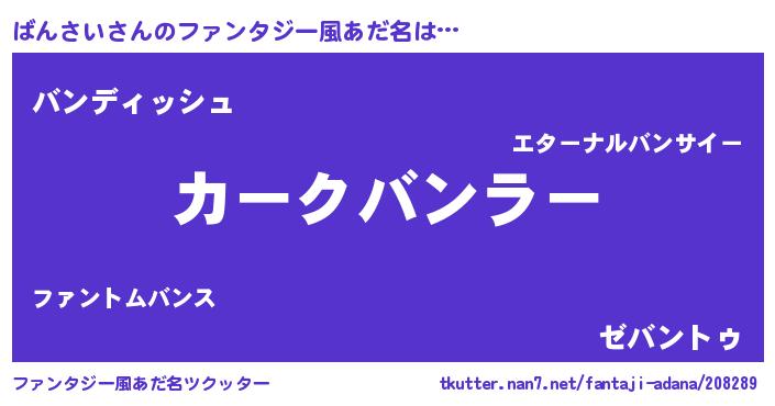 | 男性向けラノベタイトル風あだ名 | 『緋弾のバンサイ』 |