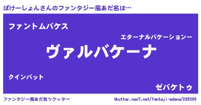 | 男性向けラノベタイトル風あだ名 | 『魔弾の王とばけーしょん』 |