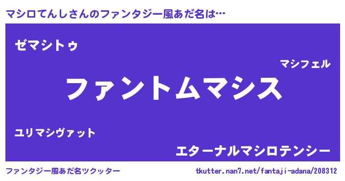 | 胡散臭い通販商品みたいなあだ名 | 『信頼と実績のサプリメント…その名も「マシロてんし」』 |