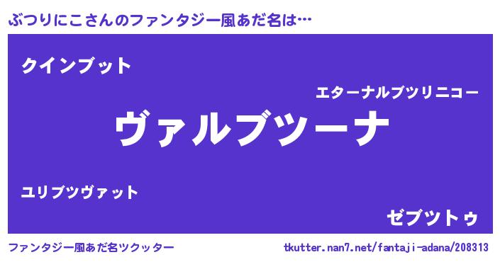 | 意味不明あだ名 | 『住所不定無職ぶつりにこ(1歳)』 |