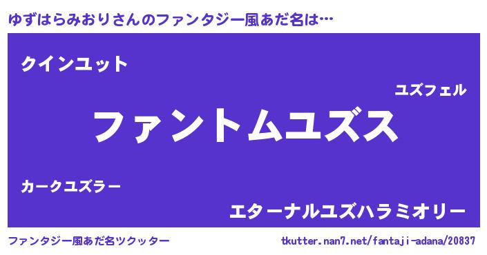 | 男性向けラノベタイトル風あだ名 | 『ゆずはらみおりの嫁は女の子じゃないと思った?』 |