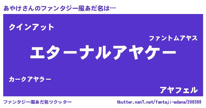 | 欧米人風あだ名 | 『アンジェラ・あやけ』『ダニエルあやけ』 |