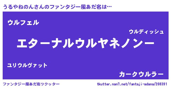 | ポケモン風あだ名 | 『ウルヤダネ』『ウルチュウ』 |