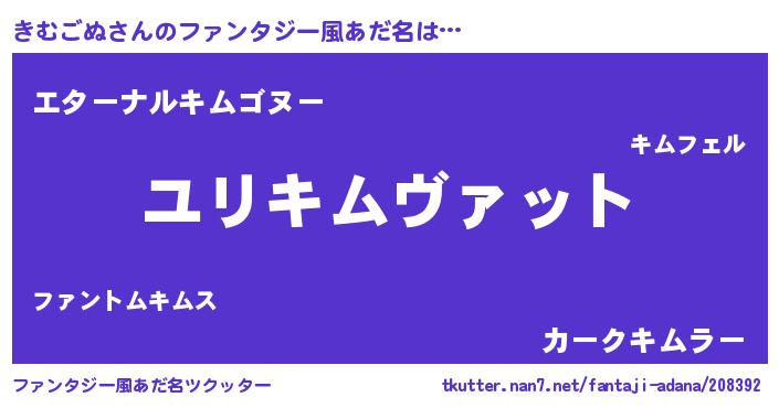 | 女子向けラノベタイトル風あだ名 | 『きむごぬの玉の輿計画!』 |