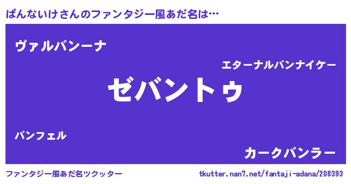 | 男性向けラノベタイトル風あだ名 | 『Re:ばんないけから始める異世界生活』 |