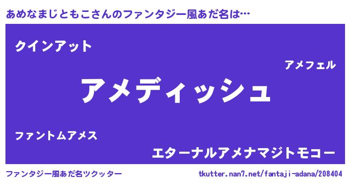| 意味不明あだ名 | 『永久保存あめなまじともこ』 |