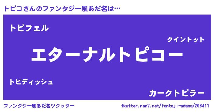| 女子向けラノベタイトル風あだ名 | 『トピコの婚約者』『トピコ恋絵巻』 |