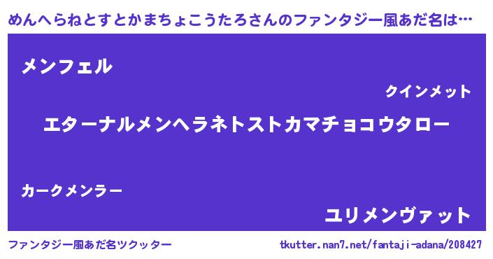 | 意味不明あだ名 | 『めんへらねとすとかまちょこうたろフォーエバー』 |