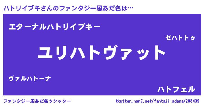 | 料理風あだ名 | 『ハトリイブキごはん』 |