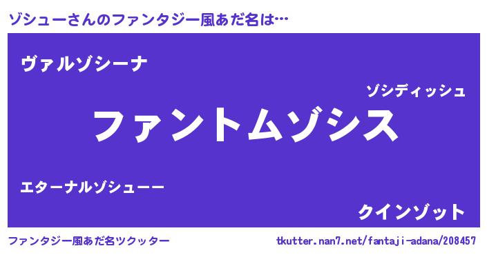 | 男性向けラノベタイトル風あだ名 | 『ダンジョンにゾシューを求めるのは間違っているだろうか』 |