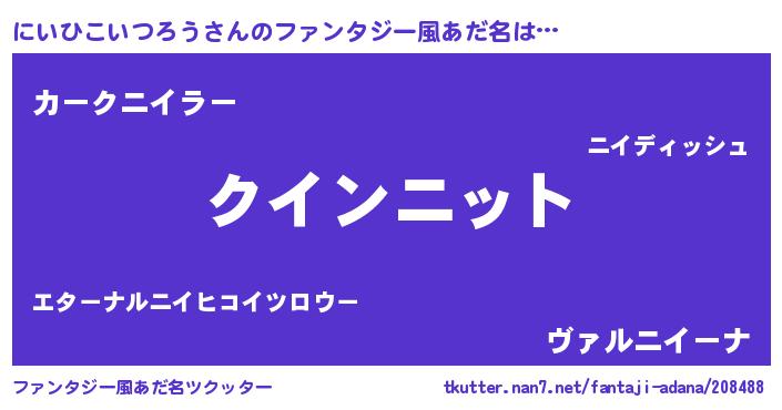 | 男性向けラノベタイトル風あだ名 | 『ノーゲーム・ノーニイヒコイツロウ』 |