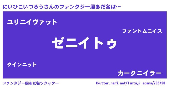 | 意味不明あだ名 | 『自称にいひこいつろう』 |