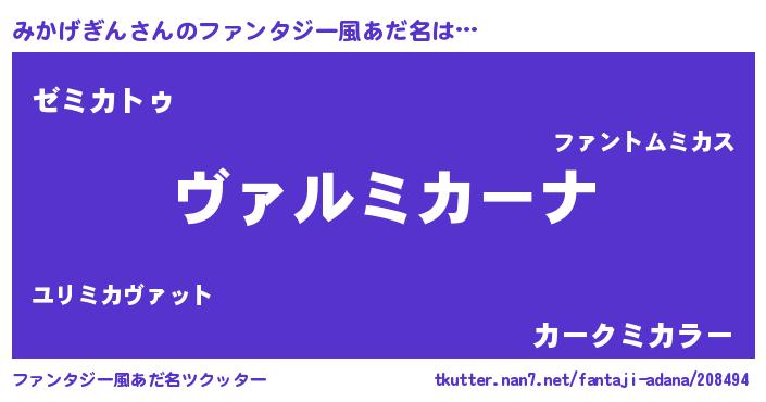 | ヘコむあだ名 | 『みか太郎』『みかげぎん(小並感)』 |