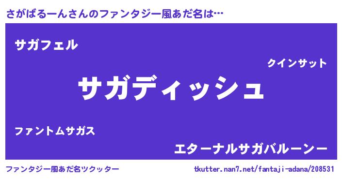 | ヘコむあだ名 | 『さがばるーん(小並感)』『さがふぇ~』 |