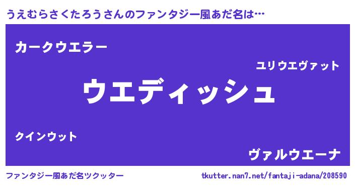 | 男性向けラノベタイトル風あだ名 | 『うえむらさくたろうという概念が存在しない退屈な世界 』 |