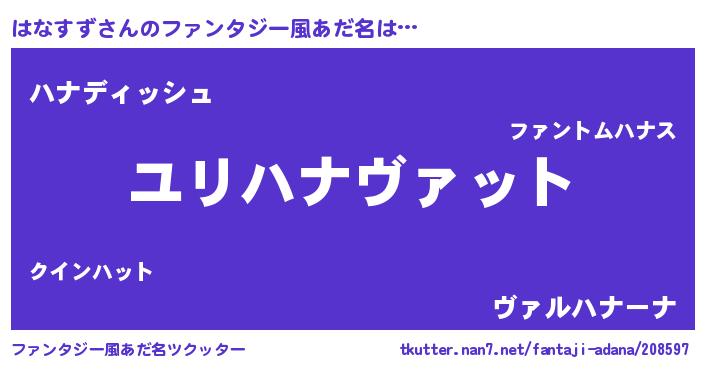 | ヘコむあだ名 | 『はなすず(震え声)』『はな太郎』 |