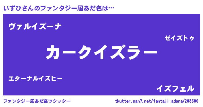 | 意味不明あだ名 | 『住所不定無職いずひ(3歳)』『自称いずひ』 |