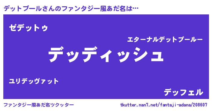 | ヘコむあだ名 | 『デットプール(遠い目)』『デッもー』 |