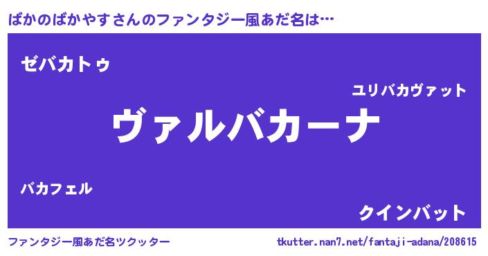 | 男性向けラノベタイトル風あだ名 | 『この素晴らしい世界にばかのばかやすを!』 |