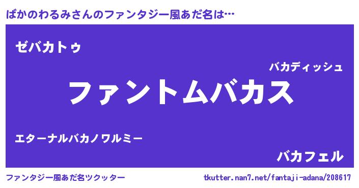 | 男性向けラノベタイトル風あだ名 | 『ばかのわるみに滅ぼされるだけの簡単なお仕事です』 |