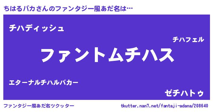 | ヒーロー風カッコイイあだ名 | 『炎刃騎士チハ』『ネオチハルバカ』 |