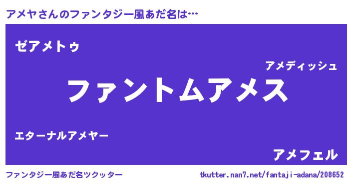 | ヒーロー風カッコイイあだ名 | 『幻影騎士アメ』『超時空戦士アメヤ』 |