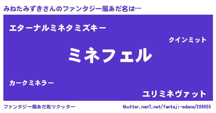 | 自動車の名前っぽいあだ名 | 『ミネティマ』『ミクア』『フィッミ』 |