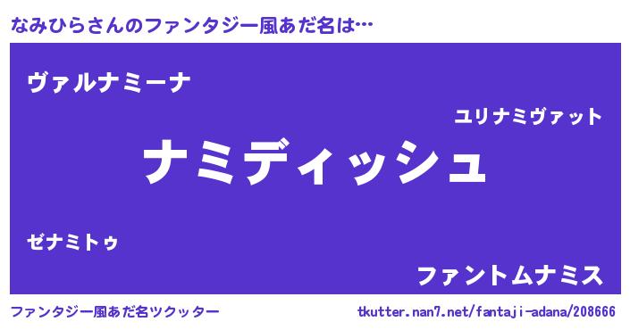 | 意味不明あだ名 | 『永久保存なみひら』『自称なみひら』 |