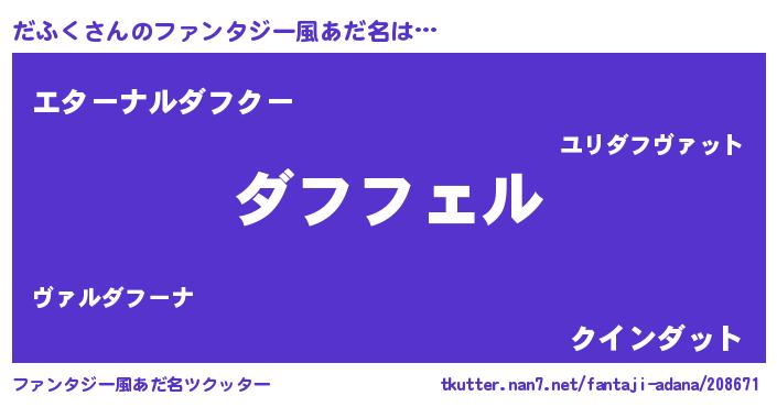 | 女子向けラノベタイトル風あだ名 | 『だふく姫と円卓の騎士』 |