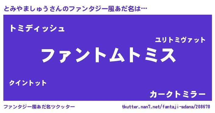 | ポケモン風あだ名 | 『ヒトミヤマシュウ』『ゼニトミ』 |