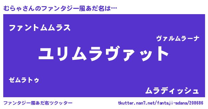 | 男性向けラノベタイトル風あだ名 | 『ムラャスレイヤー』『魔弾の王とむらゃ』 |