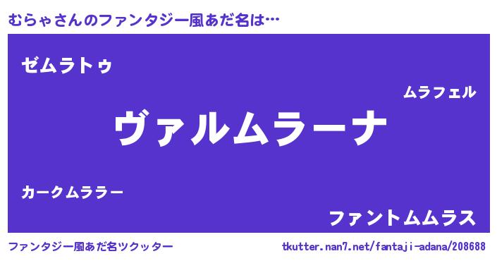 | 男性向けラノベタイトル風あだ名 | 『この素晴らしい世界にむらゃを!』 |
