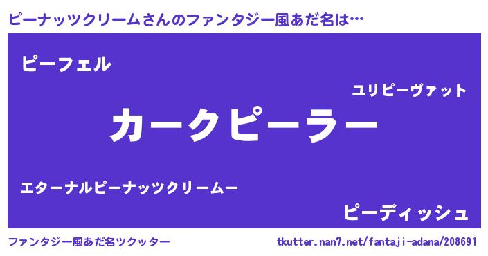 | 男性向けラノベタイトル風あだ名 | 『緋弾のピーナッツクリーム』 |