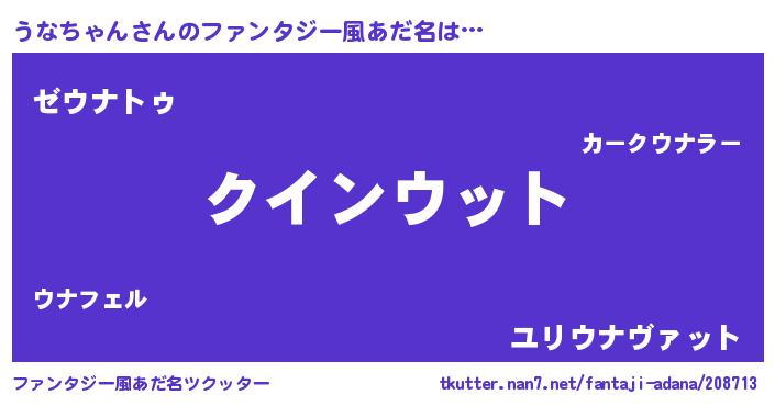 | 男性向けラノベタイトル風あだ名 | 『おまえをオタクにしてやるから、俺をうなちゃんにしてくれ! 』 |