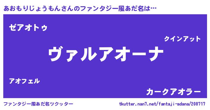 | 男性向けラノベタイトル風あだ名 | 『魔弾の王とあおもりじょうもん』 |