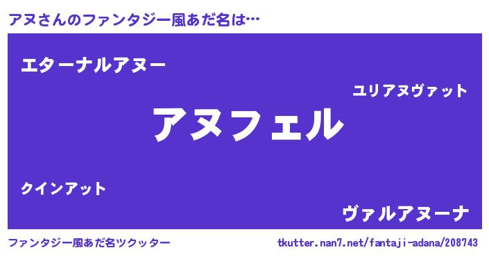 | 男性向けラノベタイトル風あだ名 | 『アヌアートオンライン』 |