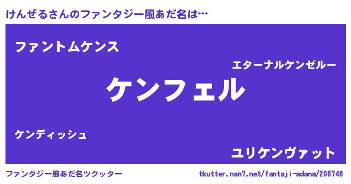 | 男性向けラノベタイトル風あだ名 | 『けんぜるの憂鬱』 |