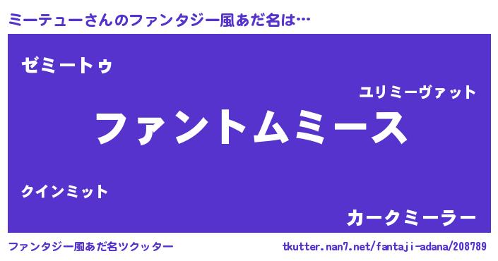 | 女子向けラノベタイトル風あだ名 | 『ミーテュー様がみてる』 |