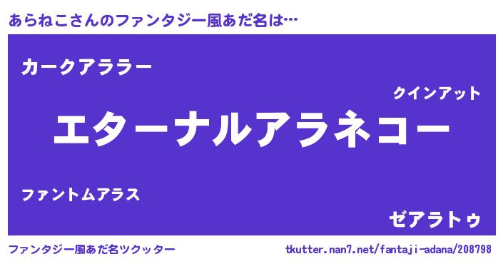 | 女子向けラノベタイトル風あだ名 | 『あらねこ伯爵の花嫁』『闇のあらねこ』 |