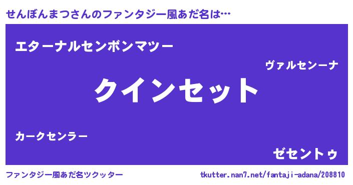 | 男性向けラノベタイトル風あだ名 | 『せんぼんまつに滅ぼされるだけの簡単なお仕事です』 |