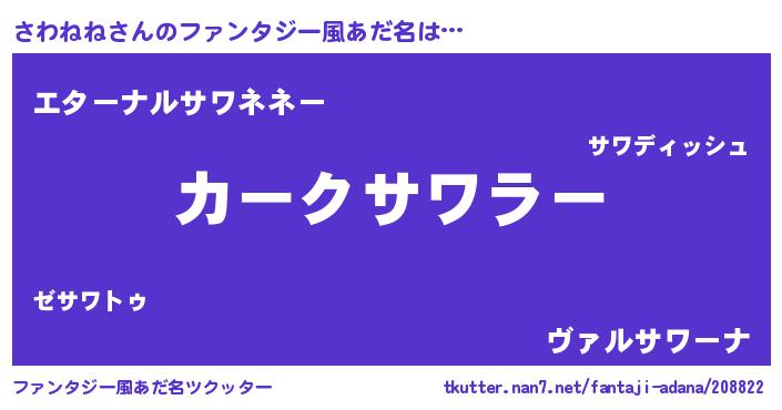 | 男性向けラノベタイトル風あだ名 | 『緋弾のサワネネ』 |