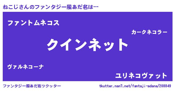 | 自動車の名前っぽいあだ名 | 『フィッネ』『ランネコギーニ』 |